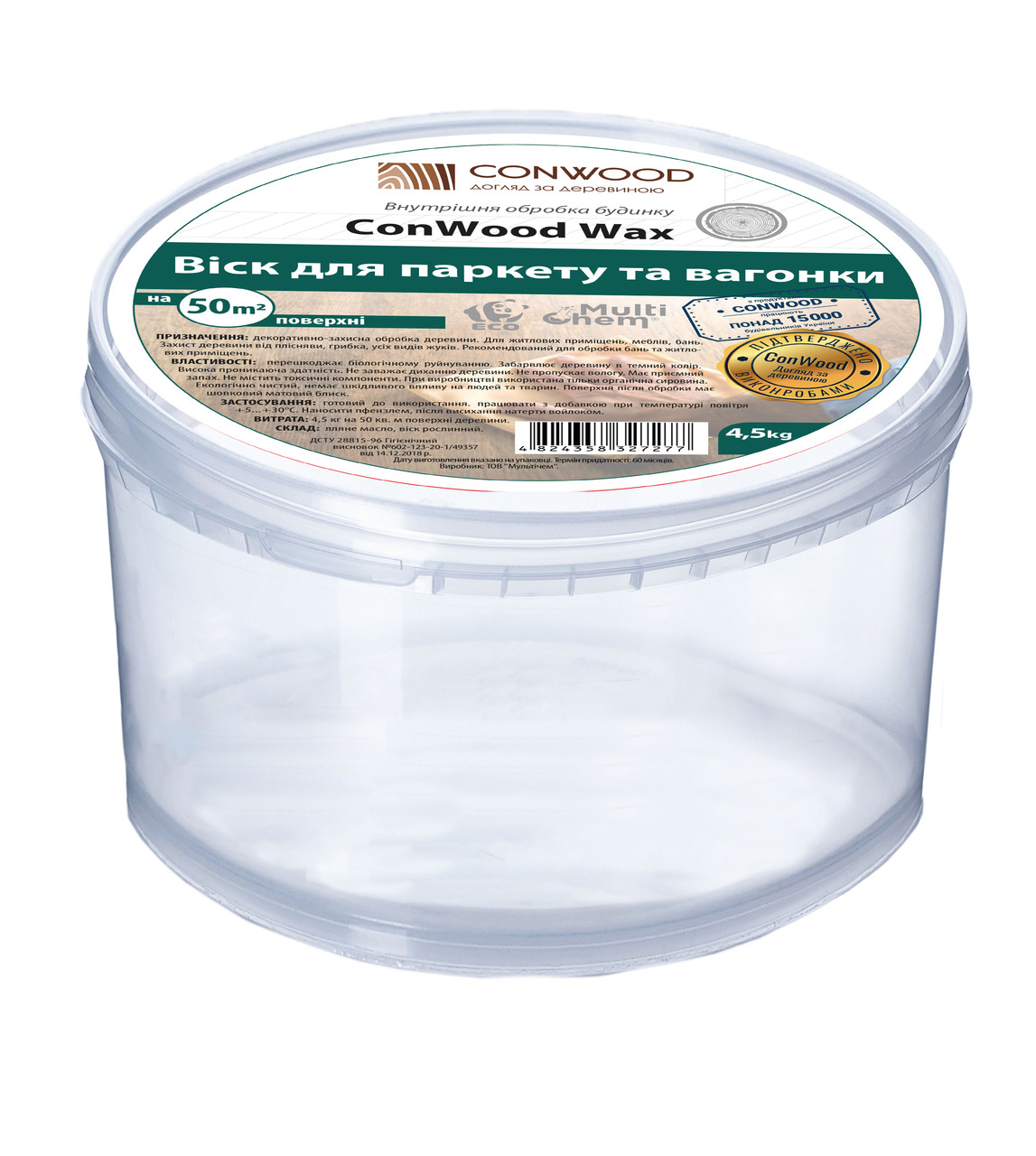 Масло віск для дерева ConWood Wax Premium - це екологічно чиста суміш бджолиного воску і льняного масла для внутрішніх робіт.