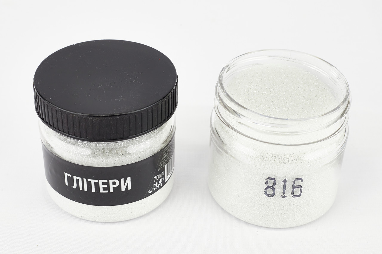Глітер сріблястий яскравий 816, 0,2 мм 1/128 , 70 мл